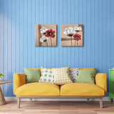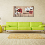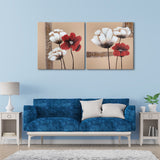 Red and White Flowers-2 Piece Abstract Floral Canvas Prints