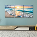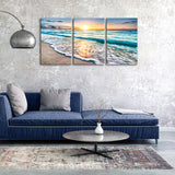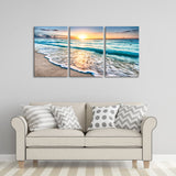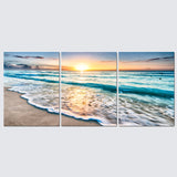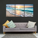 3 Panels Blue Beach Sunrise White Wave Canvas Wall Art