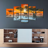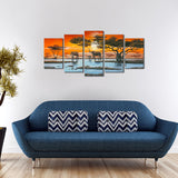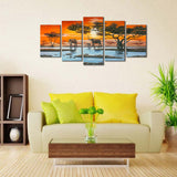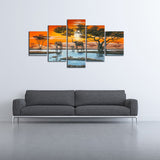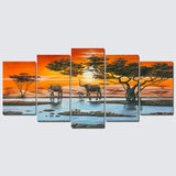 Elephant Family-Modern 5 Panel African Landscape Canvas Prints