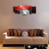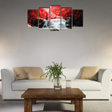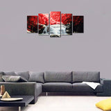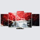 Red Forest Waterfalls-5 Piece Landscape Tree Canvas Prints