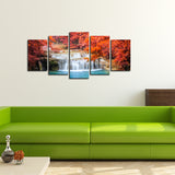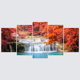Red Forest Waterfalls Landscape Canvas Prints Artwork