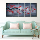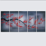 Red Plum Blossom-5 Piece Canvas Prints Wall Art