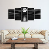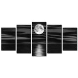 Sea White Full Moon in Night Black and White Ocean Artwork