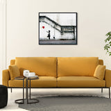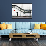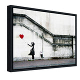 Large Black Framed Banksy Grafitti Girl with Red Balloon Grey Love Artwork