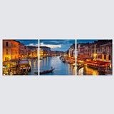 Venice Night-3 Piece Italy City Skyline Landscape Canvas Prints