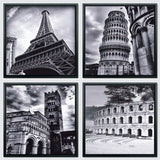 Black Framed Architectures-Europe Buildings Black and White Landscape Canvas Prints