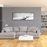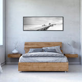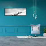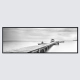 Black Framed Large Black and White Peace Ocean Bridge Landscape Canvas Wall Art