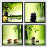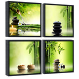 Black Framed Zen Bamboo Green Pictures Canvas Wall Art