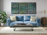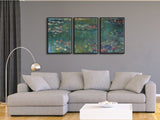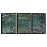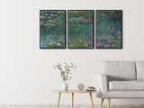 Black Framed 3 Panels Canvas Wall Art Water Lilies by Claude Monet
