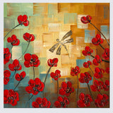 Dragonfly-Large Flowers Artwork 100% Hand Painted Oil Paintings on Canvas