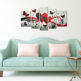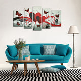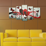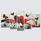 Red Heart-5 Piece Abstract Oil Paintings on Canvas