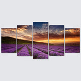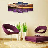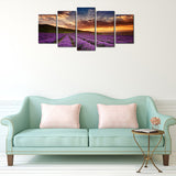 Mountains in Sunrise-5 Panels Purple Landscape Canvas Prints