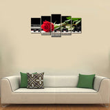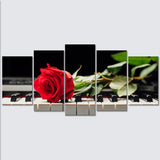 Red Rose on Piano-Modern 5 Panels Floral Canvas Prints